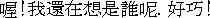 O(1)! Wo(3) hai(2) zai(4) xiang(3) shi(4) shei(2) ne.