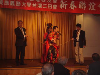 余興には、慶応義塾大学の3年生で台湾大学商学系に交換学生として留学中の斉藤哲範さんがボールやディアボロと呼ばれるロープと回転体を使った雑技で数々の賞を取られた演技を、また、もう一人は神奇傑克さんという芸名で「頂級川劇変瞼」と「宮廷戯法幻術魔術」の第一人者と言われるマジック芸を披露いただきました。
